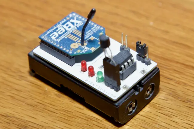 Here's an example of the early prototype using a CR2032 battery which lead to the conclusion that running 2x AA is a much better way to go!